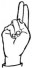 На ћирилици написано КСЕНИЈА ТРИКОШАНИН састоји се из 17 слова [?]. Исписано ћириличном једноручном азбуком за глувонеме: